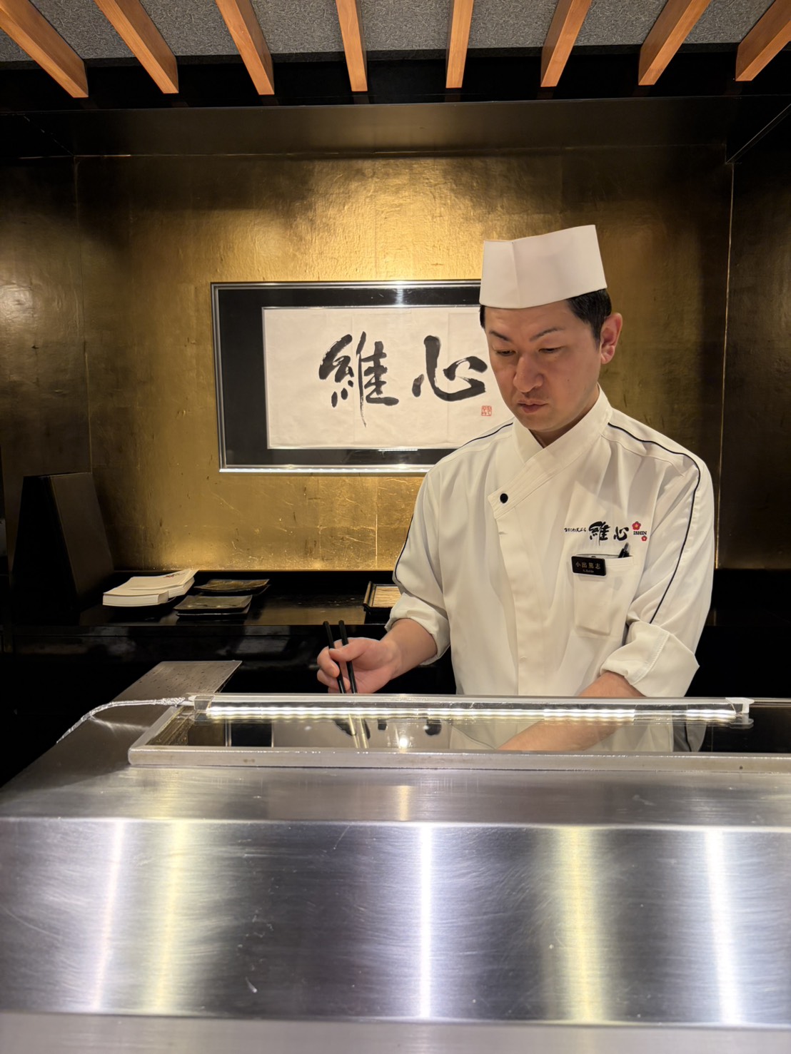 1977年、大阪府出身。1999年調理師免許を取得。大阪のイタリアンレストラン、神戸のフレンチレストラン、パティスリーにて幅広い料理の技術を身につける。約10年間料理人として勤めるが、ワインとの出会いでサービスの仕事に目覚める。キューイジヌドオオサカリョウでサービス業に転身。2016年なにわ天ぷら維心の店長に就任。料理とシャンパンの新しい創造を追求し、お客様への喜びへと繋げていきたい。1番好きなお酒は、シャンパンです!
